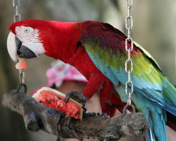 3. 鼓励鹦鹉:当鹦鹉成功吃到西瓜时,给予它表扬和奖励,比如喂食小零食。